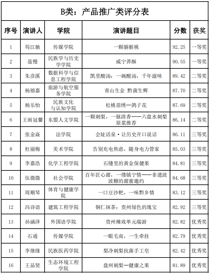 此次演讲比赛是我校持续推进创新创业教育、强化学生综合素质培养的重要举措之一。今后,学校将继续搭建多元活动平台,完善“以赛促学、以讲促创”机制,助力更多学生在创新创业实践中成长成才,为服务地方发展与国家战略需求注入青春智慧与力量。