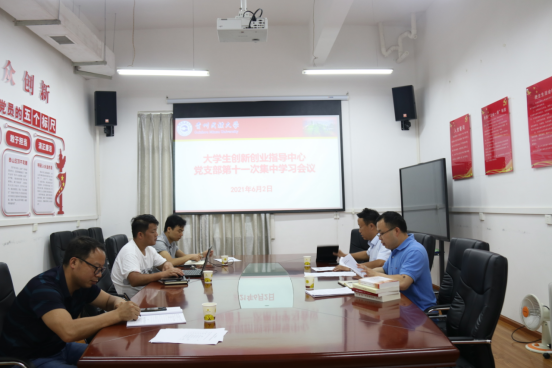 6月2日上午,大学生创新创业指导中心党支部2021年第十一次集中学习会议在中心会议室召开,会议由支部书记储昌木主持。