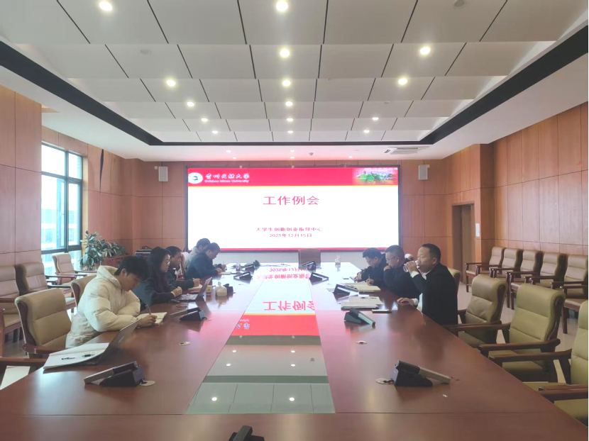 2025年12月15日,大学生创新创业指导中心于南校区A3栋五楼会议室召开第二十八次工作例会。会议由王长城主任主持,中心全体成员参与,“黔民筑梦”众创空间运营方—贵州深投创业孵化有限公司人员列席会议。